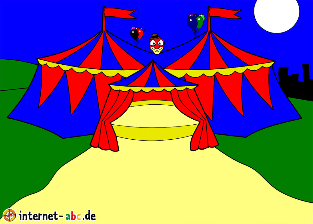 Gehst du gern in den Zirkus? Dann male doch ein schönes Bild mit den Internet-ABC-Tieren. Und erzähle dann eine kleine Geschichte dazu, okay?