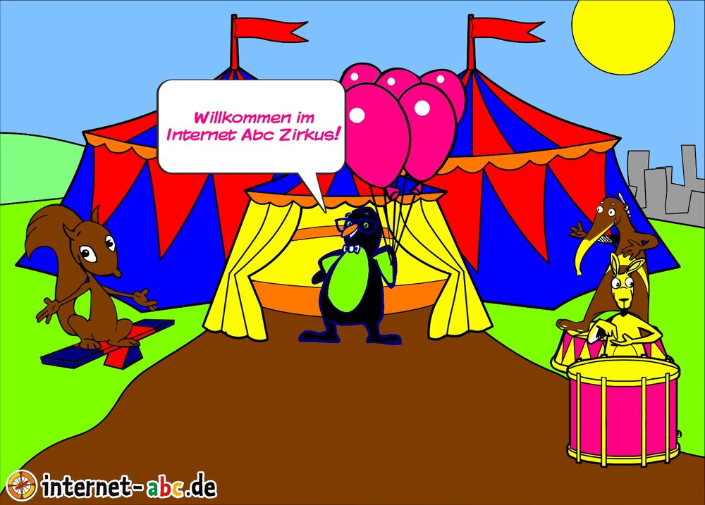 Gehst du gern in den Zirkus? Dann male doch ein schönes Bild mit den Internet-ABC-Tieren. Und erzähle dann eine kleine Geschichte dazu, okay?