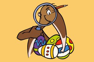 Percy auf der Ostereiersuche; Internet-ABCOstergrüße kann man auch digital an die Familie und an den Freundeskreis schicken, mit elektronischen Postkarten: dem E-Cards.