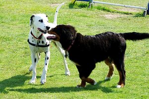 Zwei Hunde; Bild: Find-das-Bild.de / Michael SchnellWeniger Feuerwerk schützt Tiere und Umwelt: weniger Angst, sauberere Luft, weniger Müll. Erfahrt, warum das Böllerverbot Vorteile für alle bringt.