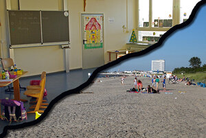 Klassenzimmer und Strandurlaub; Bilder: Find-das-Bild.de / Michael SchnellWarum beginnt das Schuljahr in Deutschland nicht in allen Bundesländern gleichzeitig? Ein Beitrag des Internet-ABC.