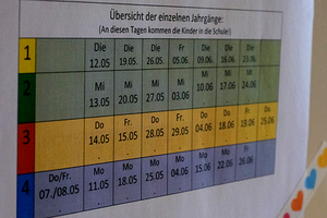 Manche Schulen verteilen den Unterricht auf unterschiedliche Tage. Einige Klassen gehen also nur am Montag in die Schule, die anderen am Dienstag und so weiter. Oder es wird nach Wochen aufgeteilt – eine Woche Schule, eine Woche zuhause arbeiten.
