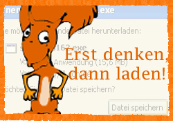 Sei vorsichtig mit Downloads (= dem Herunterladen von Dateien aus dem Internet) - es kann sein, dass du etwas Verbotenes tust oder dein Computer sich einen Virus einfängt!