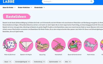 Einen eigenen Bereich für viele coole Bastelideen findest du hier. Bastel einen Schachtelwicht oder eine Bienenbrille, bereite Klebstoff aus Kartoffeln oder falte eine Zaubertüte. Über die Filterfunktion kannst du ganz gezielt nach dem passenden Basteltipp für dich suchen.