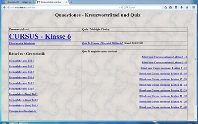 Trag einen Spitznamen und die Anzahl der Quizfragen ein, die du beantworten möchtest, und schon kann es losgehen: Spannende Fragen aus den Bereichen Latein, antike Geschichte, Mythologie, Sprachgeschichte oder Architektur warten darauf, von dir geknackt zu werden! Die Seite stammt von einem Lateinleistungskurs eines Gymnasiums.