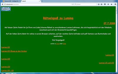 Im Rätselspaß zu Lumina kannst du deine Vokabel- und Grammatikkenntnisse an Hand von Rätseln überprüfen. So macht das Üben viel mehr Spaß. Darunter sind Lückentexte und Kreuzworträtsel. Knifflig, knifflig.