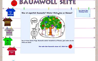 Wo kommt die Baumwolle eigentlich her? Tatsächlich vom Baum? Und wird beim Anbau eigentlich auch auf den Umweltschutz geachtet? Diese Seite verrät es Dir. Außerdem gibt es einige Baumwoll-Geschichten und ein Quiz!