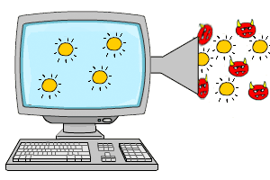 Auch für den Computer gibt es Filter, denn im Internet gibt es nicht nur Lustiges und Wissenswertes, sondern leider auch schockierende, beleidigende und verbotene Seiten. Ein Filterprogramm hilft dabei, diese Seiten voneinander zu unterscheiden. Der Filter lässt die unerwünschten Seiten nicht durch, sie werden nicht mehr angezeigt.
