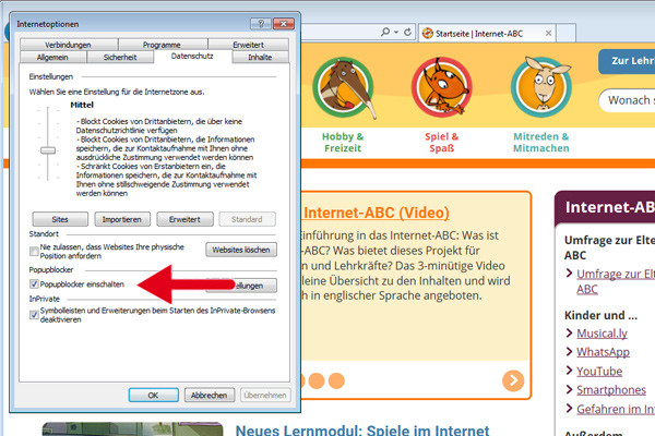 Wenn dich Pop-ups stören, dann kannst du sie in deinem einfach abschalten.
