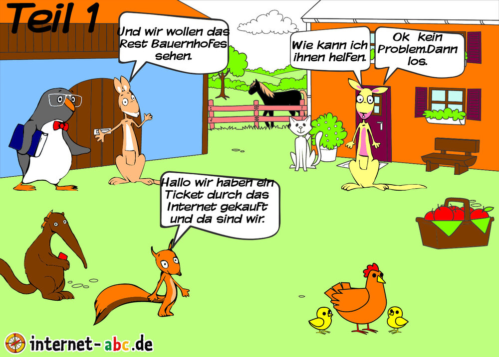 Die 4 freunde haben durch das Internet einen Ticket für einen Bauernhof gekauft