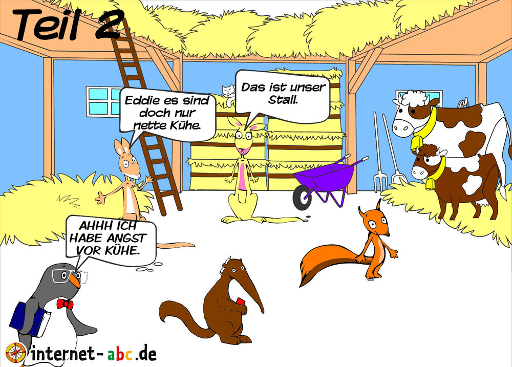 Die 4 freunde sind in den Stall des Bauernhofes gegangen und Eddie hatte angst vor Kühe aber die kühe wollten Eddie nichts machen