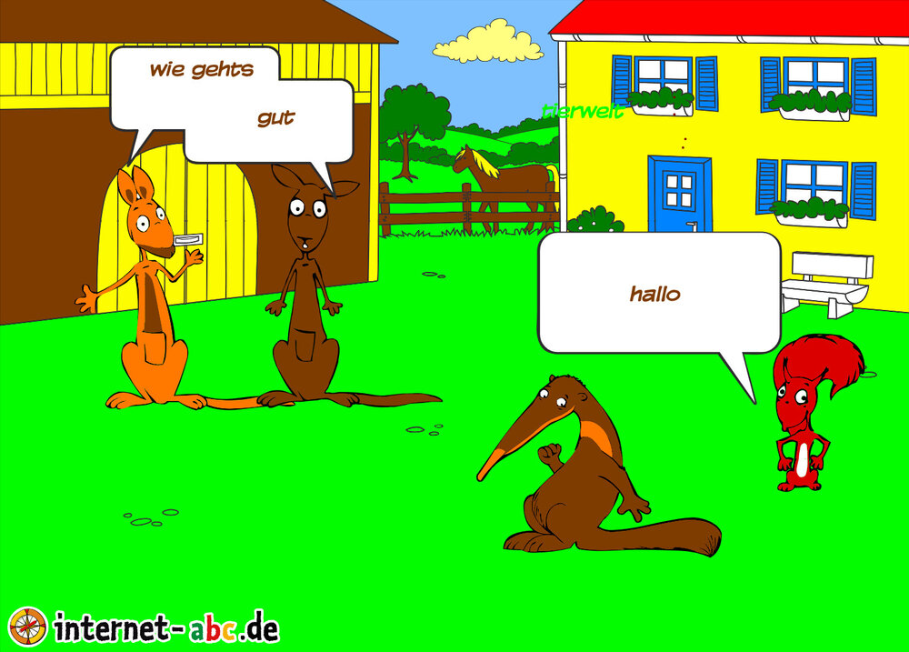 es war einmal 2 kengeru eine ich;rnchen und ein nasenber sie wohnten auf einen bauernhof und konnten sprechen ende
