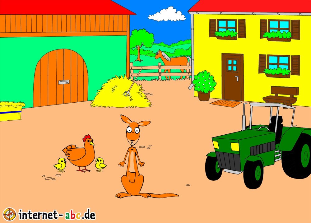 Jumpy besucht heute einen Bauernhof. Er staut über die vielen Tiere. Huch hier ist ja die Luft ganz anders als in der Stadt.