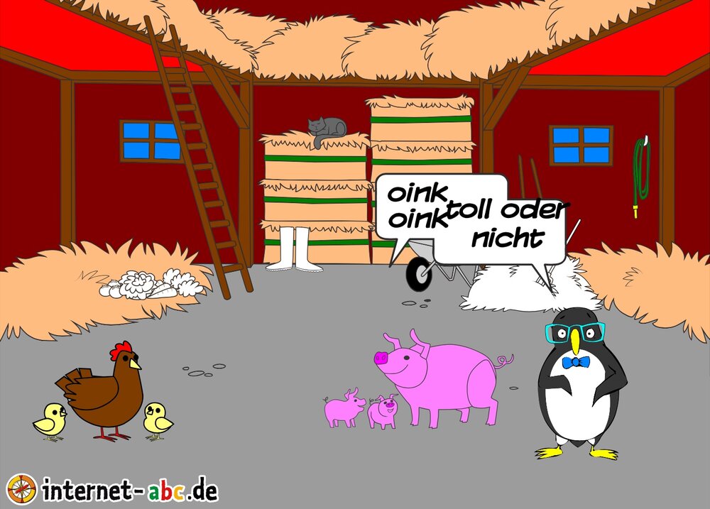 ES WAR EIN MAL EIN PINGUIN DER REISTE GERN DOCH DANN SAH DER PINGUIN EINE SCHEUNE.