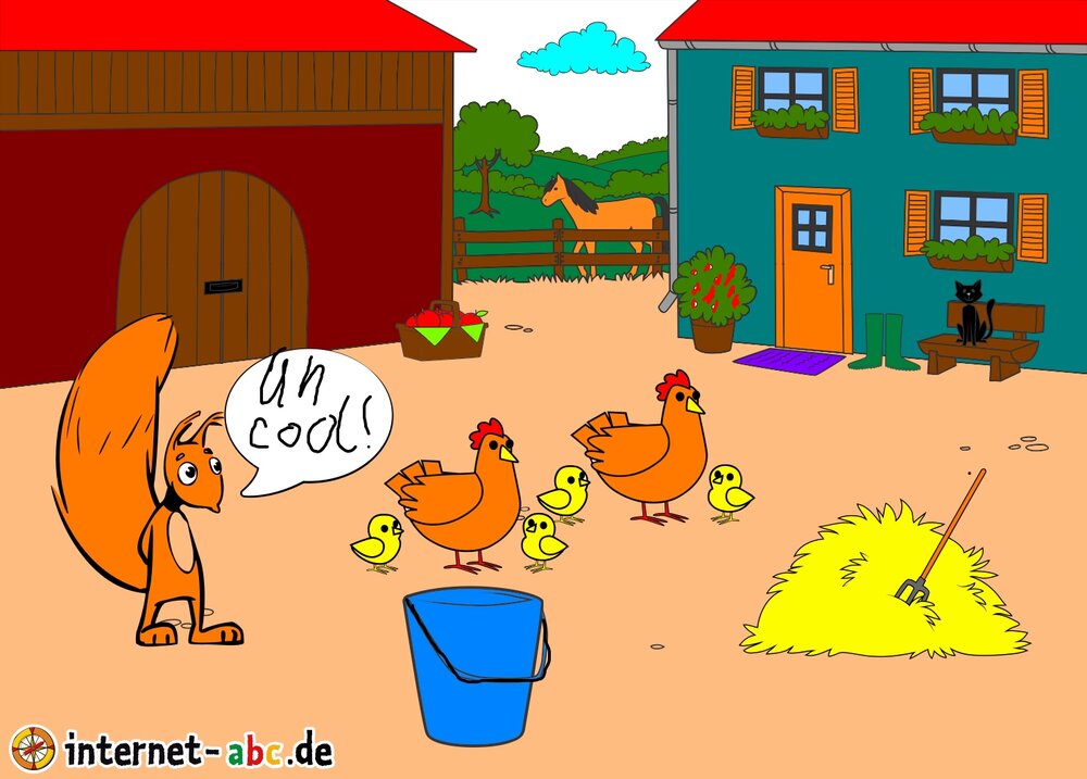 Hier kannst du sehen, welche Bilder es schon zum Thema "Bauernhof" gibt. Klicke auf ein Bild oder eine Überschrift, um zur Seite zu gelangen. Dort findest du auch eine passende Geschichte zum Bild.
