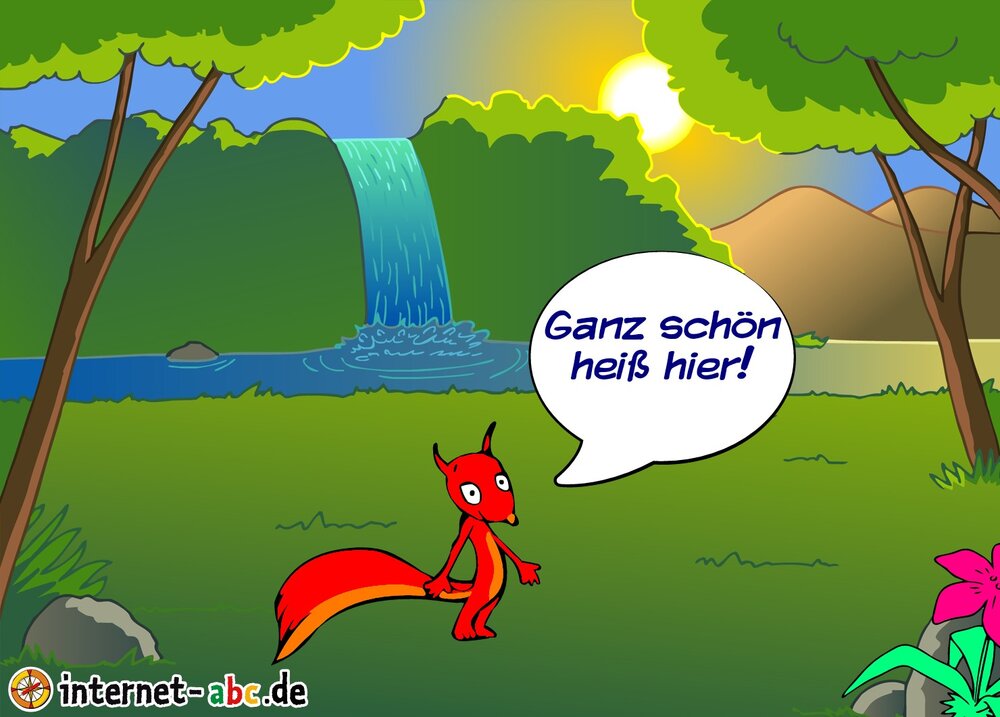 Flizzi ist heute ein Tag im Dschungel um sich um zu sehen.Dabei entdeckt er einen plätschernden Wasserfall und geht dort auch sofort in das Wasser.