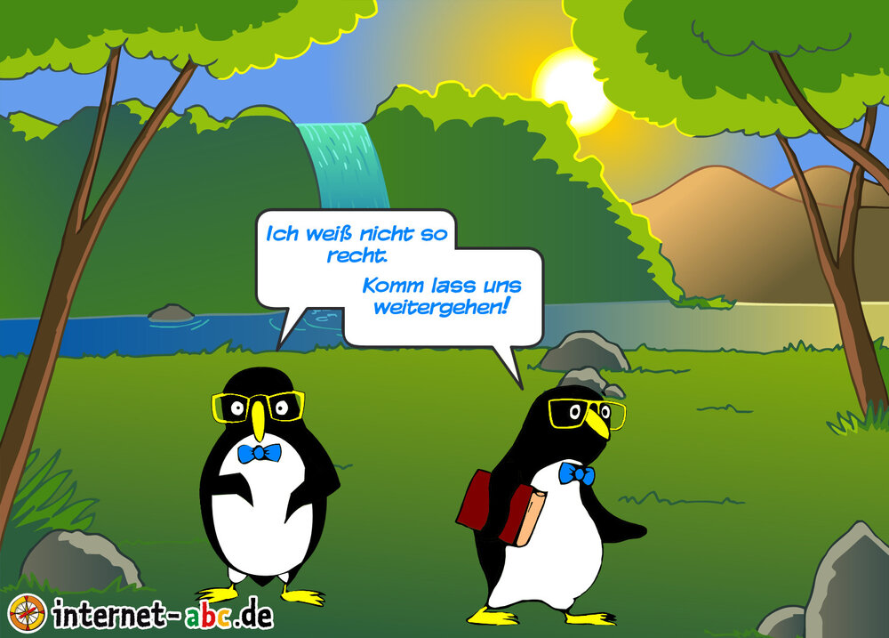Die beiden Pinguine sind auf Dschungeltour.Doch dann will der eine Pinguin nicht mehr weitergehen,der andere aber schon.
