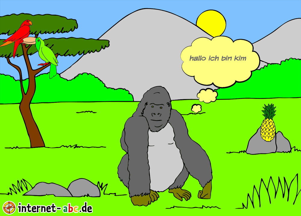 es war einmal ein affe der sah auf dem stein eine anernas und auf dem baum 2 vögel er dachte sich etwas fehl aber er wuste nicht was auf einamal sagte der vogel es ist doch ofensichtlich du bist alleine du braust eine freundin allso machte er sich auf die reiße auf seine freundin