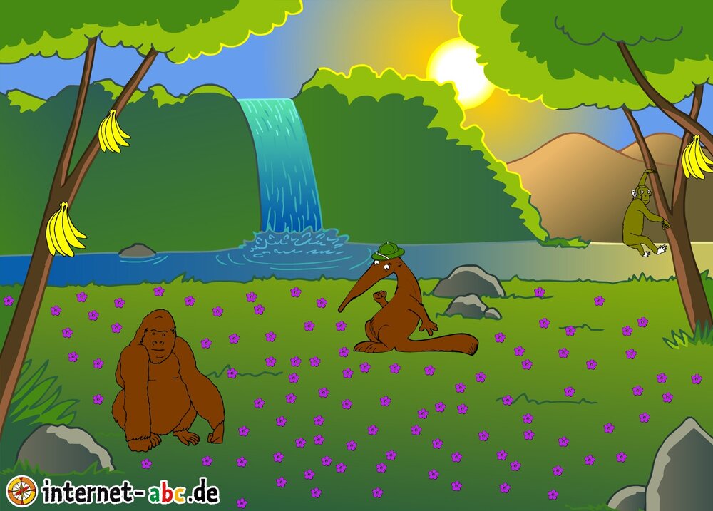 der Ameisenbär erforschte den dschungel und fand 2 Affen