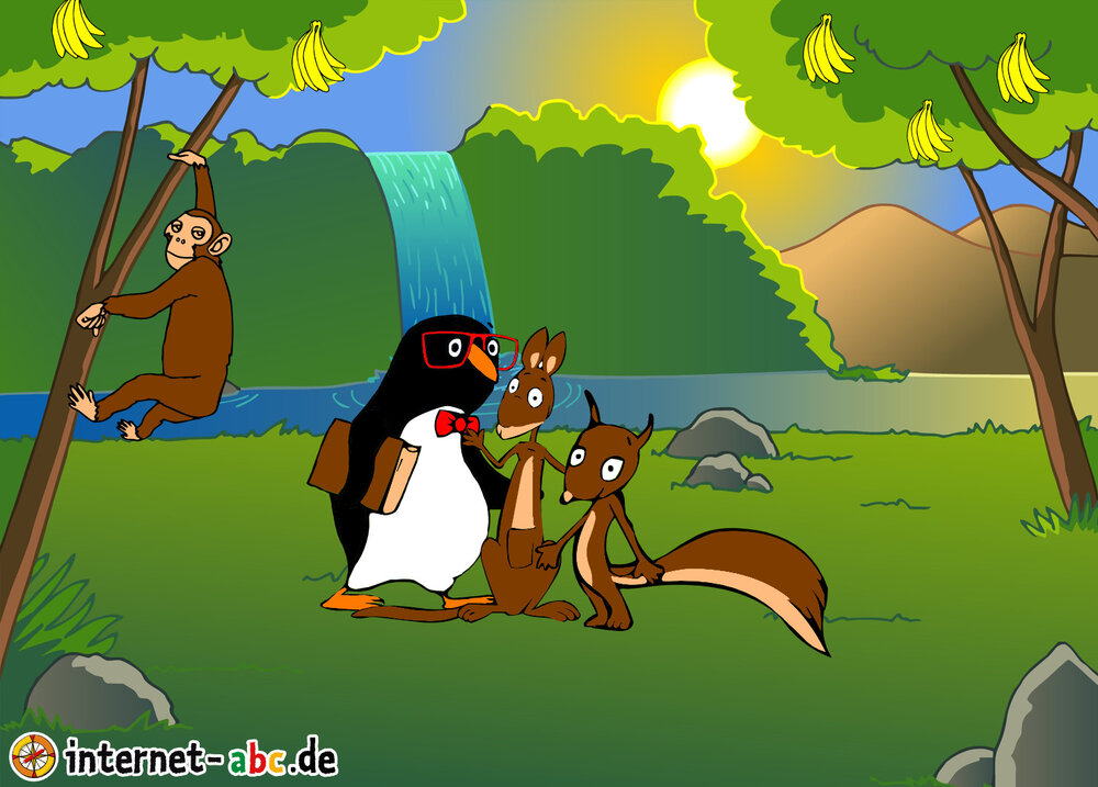Es war einmal ein Pinguin,ein Eichhörnchen und ein Kängeru.