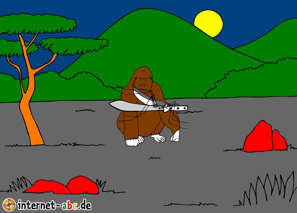 Der man wollte die Affe töten aber der Spinne hat im gerrettet
