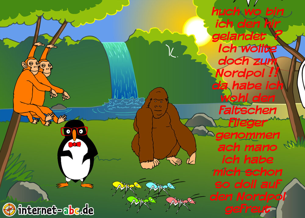 Eddi ist nicht am Nordpol sondern im Dschungel gelandet .
