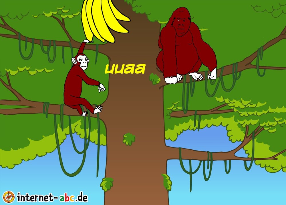 ein affe auf einem baum sie streiten sich um die Bananen der kleine wollte die Bananen habe aber der andre auch so habe sie sich so lange geschtriten bis sie sich geeinigt habe und war das ende