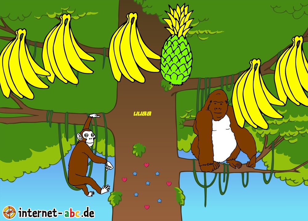 die affen streiten um die Bananen der eine will die Bananen und der andere will sie auch sie streiten sich und dann ist die geschichte vorbei