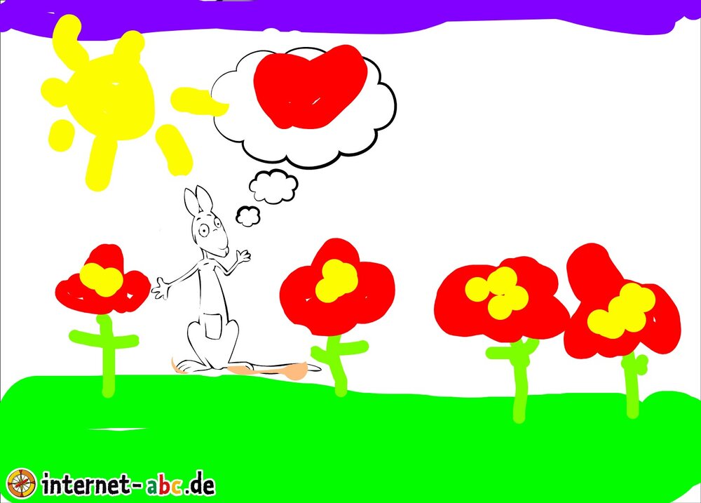 Das Känguru geht zur einer schönen Blumenwiese . Sie findet die Umgebung so toll.Dort genießt sie ihren Tag Ende!
