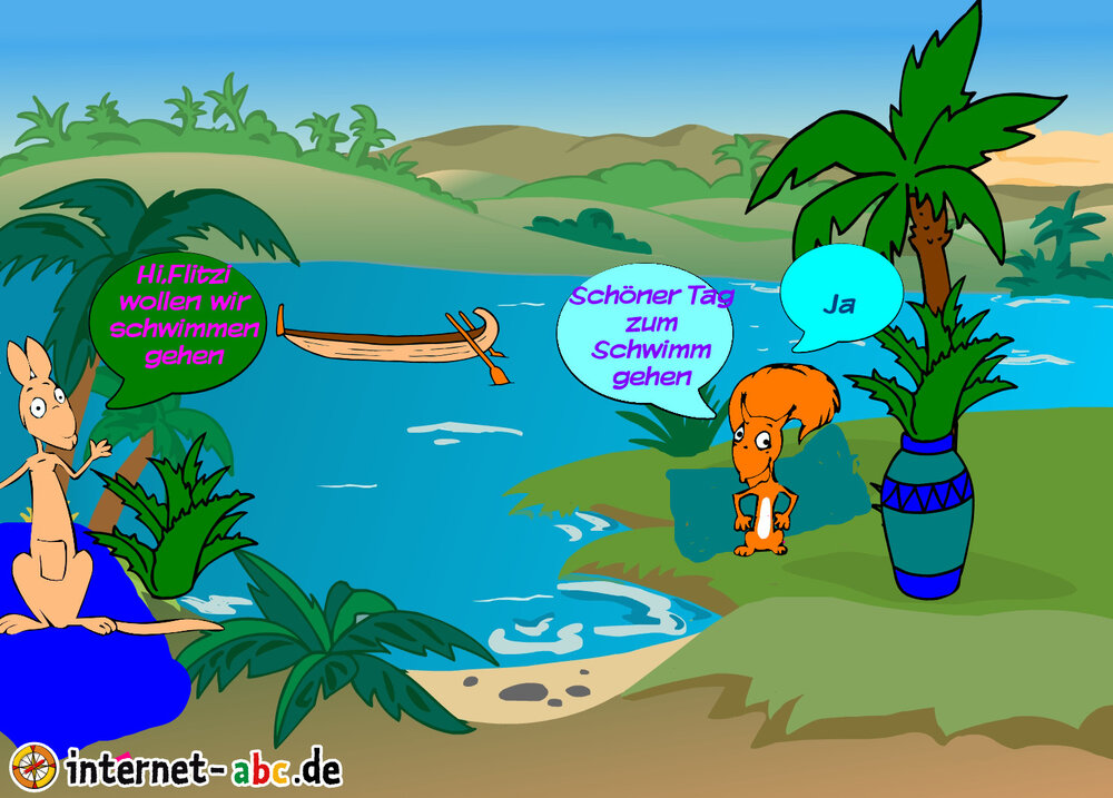 Flitzi und Jampi gehen zusammen schwimmen wegen zufall weil sie sich getroffen haben am strand.