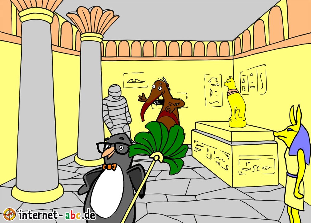 Mit einem fröhlichen Watscheln und einem schnellen Trippeln machten sich die beiden Freunde auf den Weg. Nach einer langen Reise durch heiße Wüsten und über weite Meere erreichten sie endlich das Land der Pharaonen.
