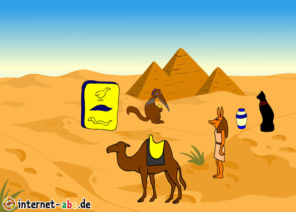 Der Ameisenbär hat in Ägypten viele Dinge gefunden und schreibt alles auf.