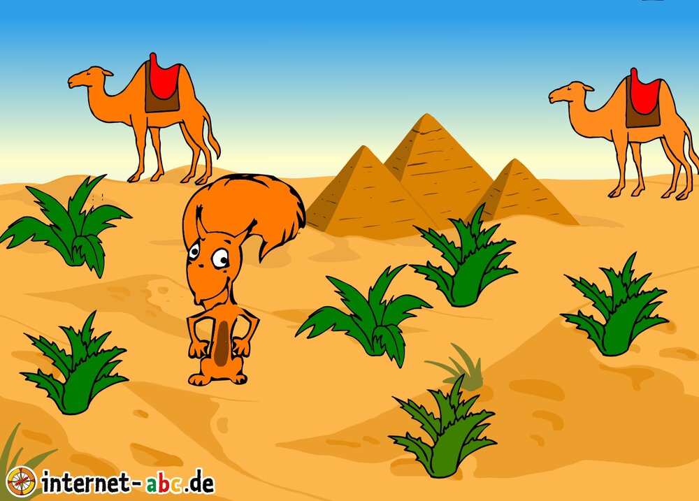 Von einem Tier in der Wüste bei den Kamelen und Pyramide