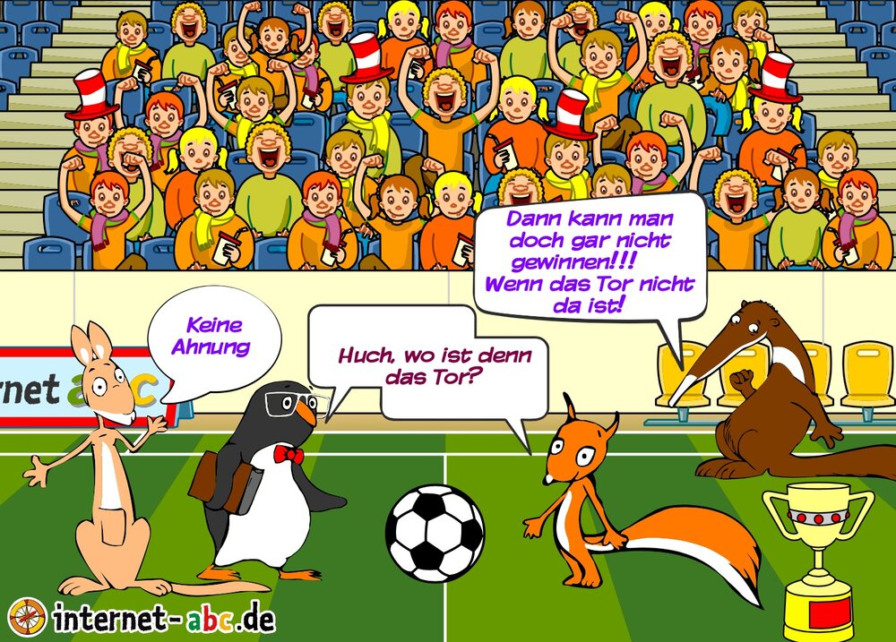 Eddie, Percy, Flizzy und Jumpy stehen auf dem Fußballfeld und fragen sich wo das Tor ist. Werden sie es wieder finden? Wer weiß?
