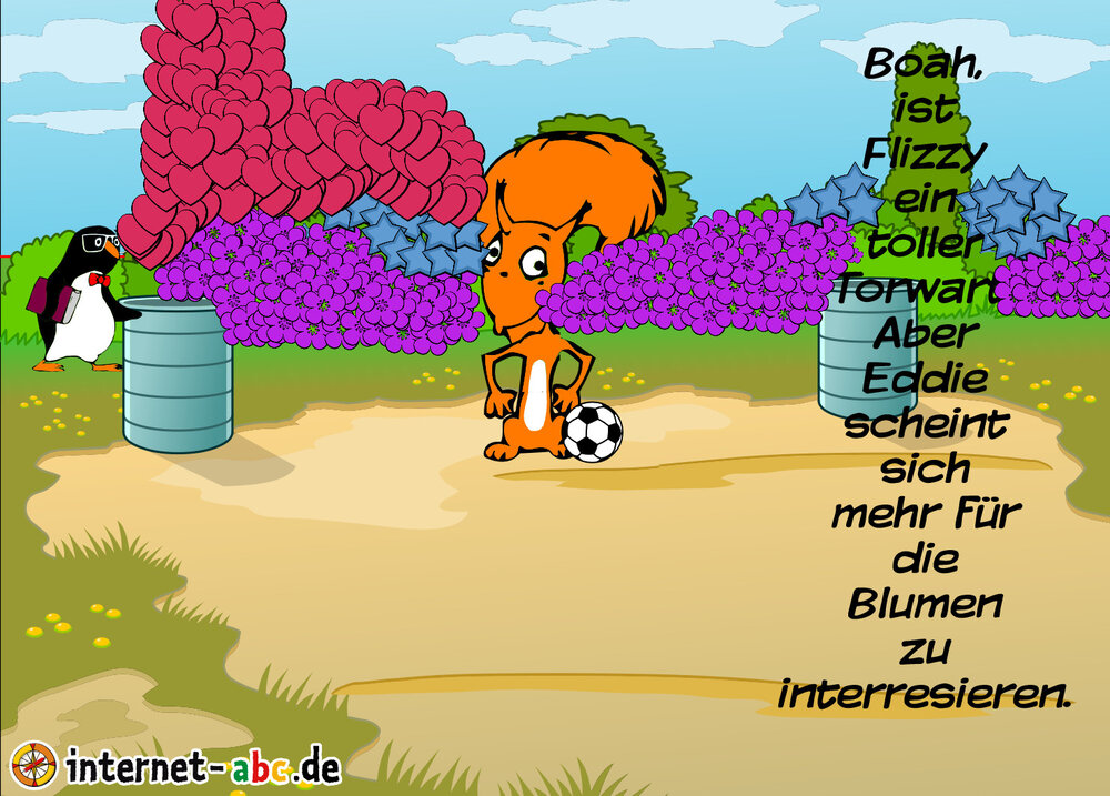 Boah, ist Flizzy ein toller Torwart. Aber Eddie scheint sich mehr für die vielen, bunten, seltsam geformten Blumen zu interessieren.