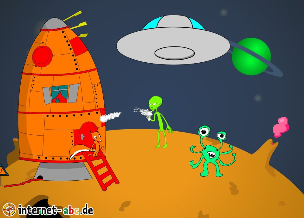 Es war einmal eine sehr schnelle Rakete flitze ist unter zum Mond geflogen da hat sie zwei eliens ????????gefunden der eine wollte sie mit eine