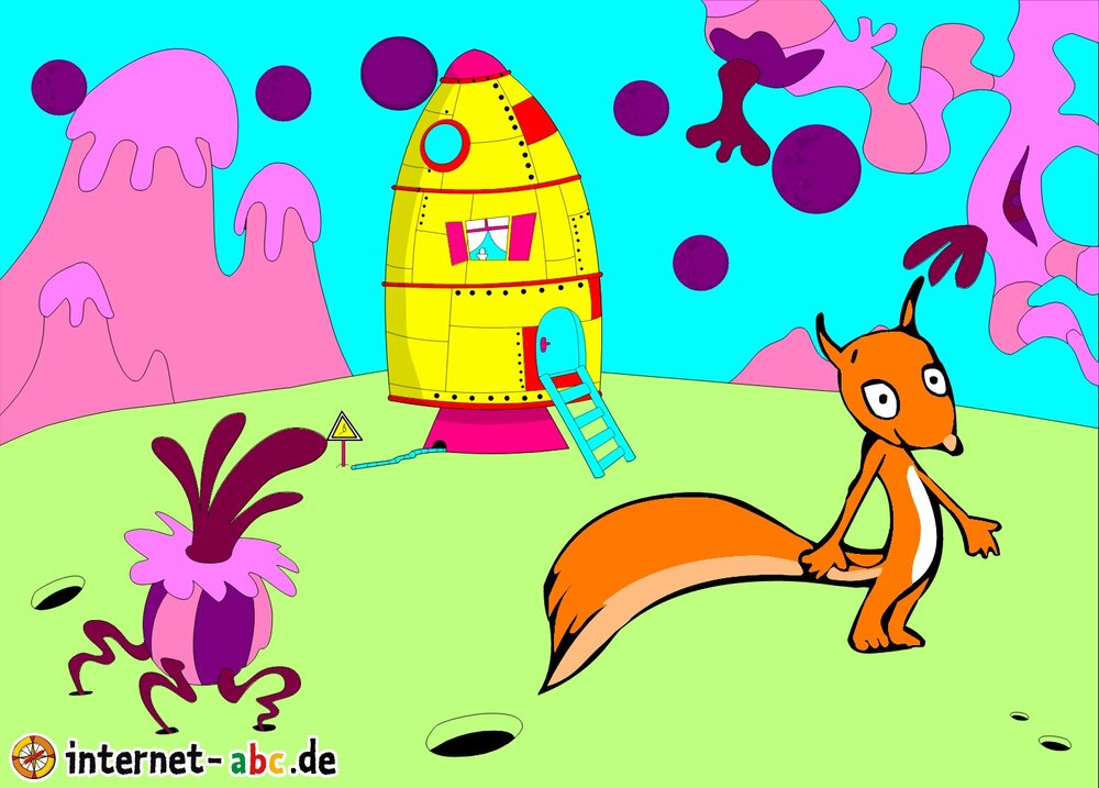 Flitzi landet auf einem Planeten. Oh ich zaele1,2,3,4,5,6Monde?