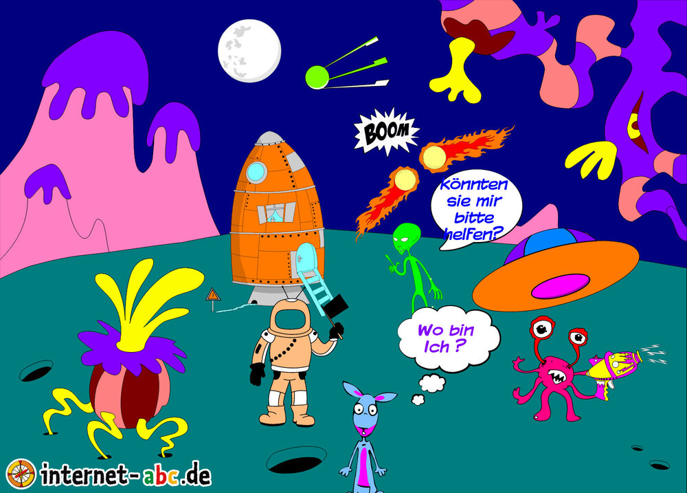 Hier kannst du sehen, welche Bilder es schon zum Thema Weltraum gibt. Klicke auf ein Bild oder eine Überschrift, um zur Seite zu gelangen. Dort findest du auch eine passende Geschichte zum Bild.