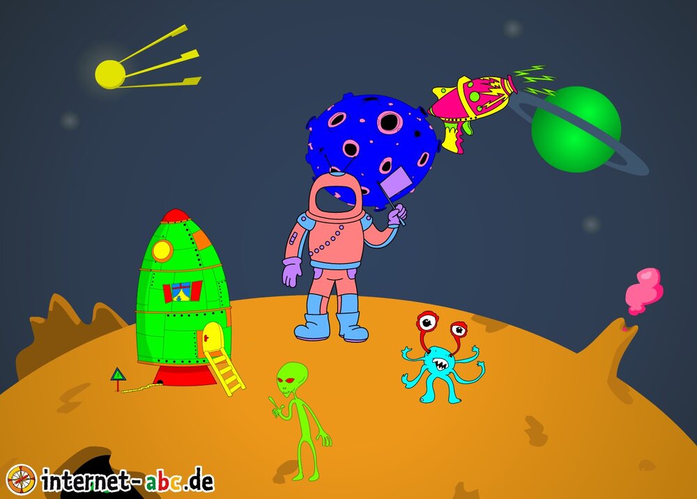 Hier kannst du sehen, welche Bilder es schon zum Thema Weltraum gibt. Klicke auf ein Bild oder eine Überschrift, um zur Seite zu gelangen. Dort findest du auch eine passende Geschichte zum Bild.