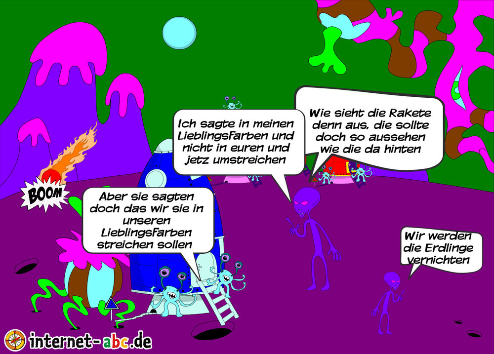 Die Aliens haben einen fiesen Plan ausgehäckt : Sie wollen die Erde auslöschen. Dafür bauen sie extra Raketen, auch wenn manchmal die Farbe nicht stimmt