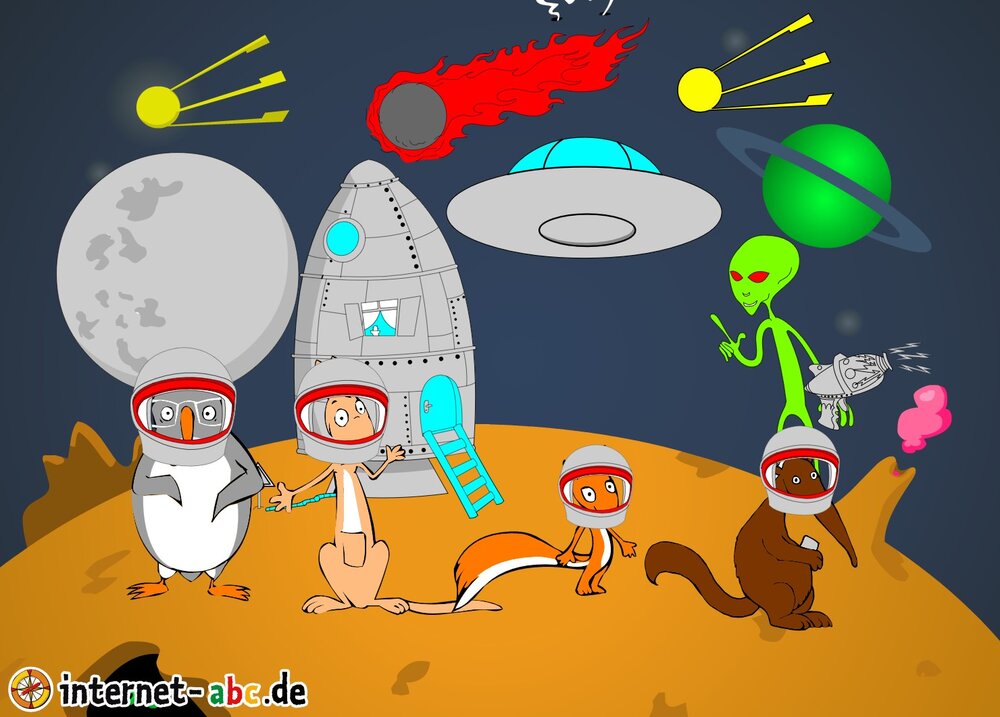Hier kannst du sehen, welche Bilder es schon zum Thema Weltraum gibt. Klicke auf ein Bild oder eine Überschrift, um zur Seite zu gelangen. Dort findest du auch eine passende Geschichte zum Bild.