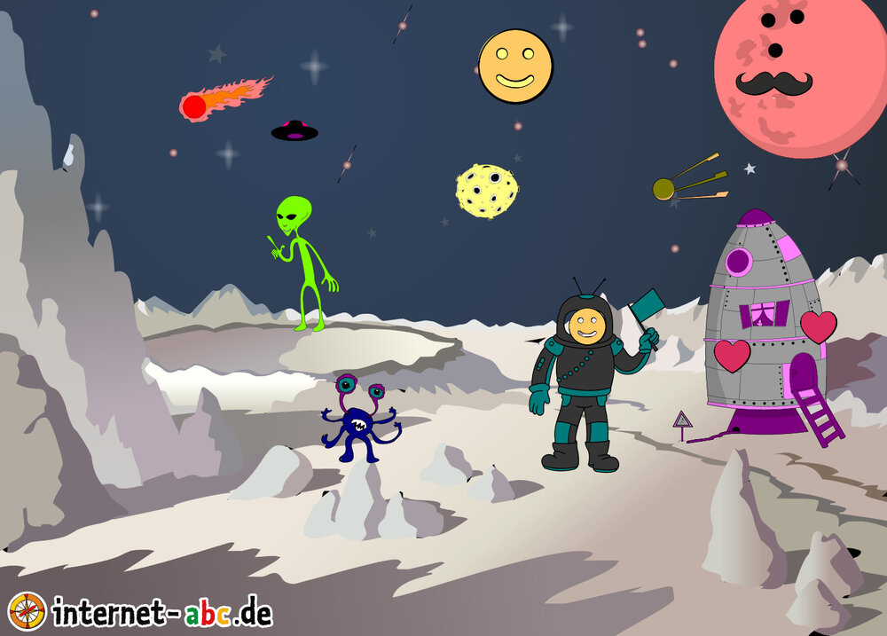 Hier kannst du sehen, welche Bilder es schon zum Thema Weltraum gibt. Klicke auf ein Bild oder eine Überschrift, um zur Seite zu gelangen. Dort findest du auch eine passende Geschichte zum Bild.
