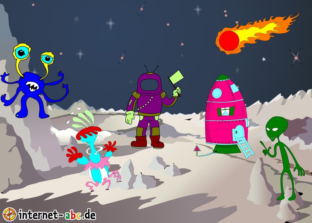 Hier kannst du sehen, welche Bilder es schon zum Thema Weltraum gibt. Klicke auf ein Bild oder eine Überschrift, um zur Seite zu gelangen. Dort findest du auch eine passende Geschichte zum Bild.