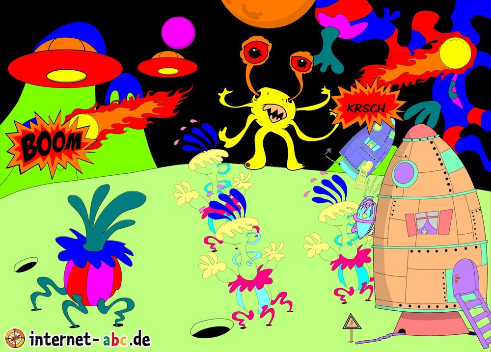 Hier kannst du sehen, welche Bilder es schon zum Thema Weltraum gibt. Klicke auf ein Bild oder eine Überschrift, um zur Seite zu gelangen. Dort findest du auch eine passende Geschichte zum Bild.