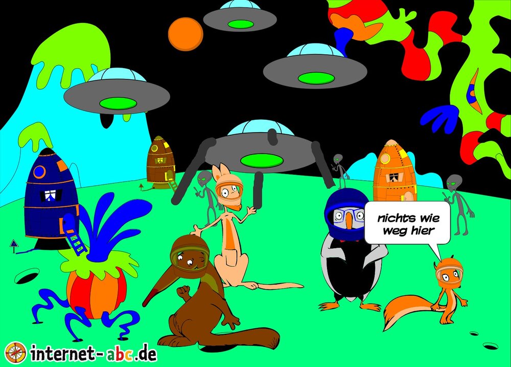 als die aliens 4 ufos schicken hauen unsere Freunde ab