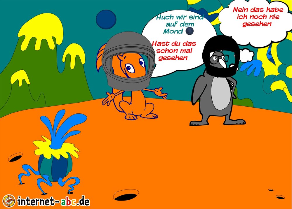 Eddi und Flitzi sind auf dem Mond 🌑 sie gucken sich verwundert an Huch wo sind wir ?