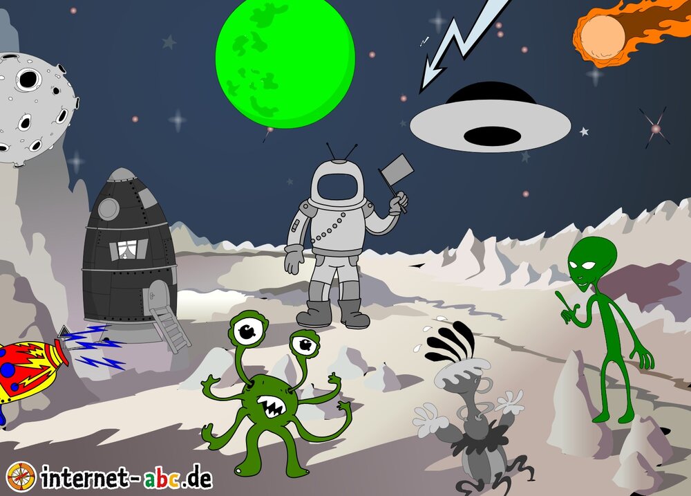 Hier kannst du sehen, welche Bilder es schon zum Thema Weltraum gibt. Klicke auf ein Bild oder eine Überschrift, um zur Seite zu gelangen. Dort findest du auch eine passende Geschichte zum Bild.