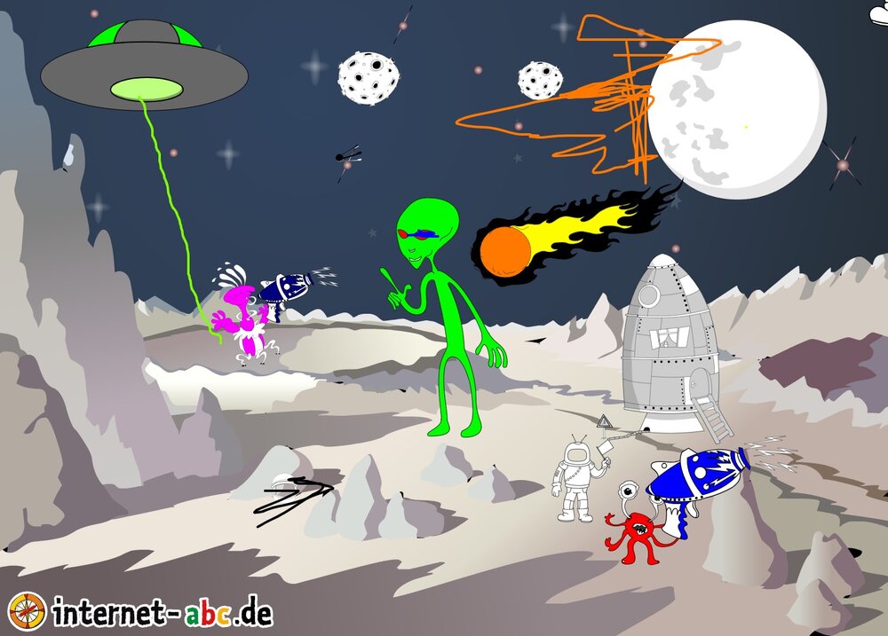 Hier kannst du sehen, welche Bilder es schon zum Thema Weltraum gibt. Klicke auf ein Bild oder eine Überschrift, um zur Seite zu gelangen. Dort findest du auch eine passende Geschichte zum Bild.