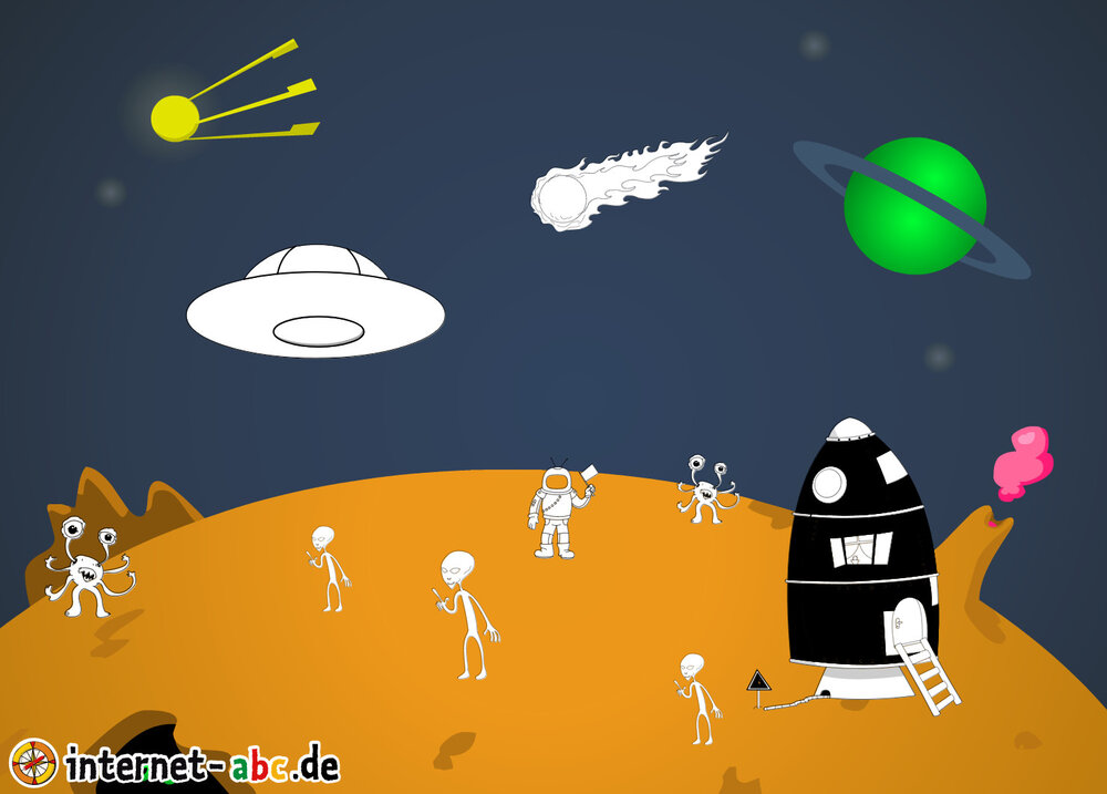 Hier kannst du sehen, welche Bilder es schon zum Thema Weltraum gibt. Klicke auf ein Bild oder eine Überschrift, um zur Seite zu gelangen. Dort findest du auch eine passende Geschichte zum Bild.