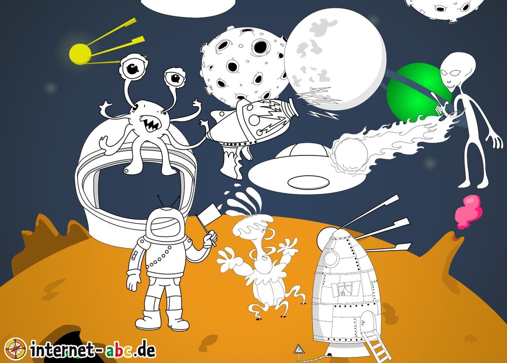 Hier kannst du sehen, welche Bilder es schon zum Thema Weltraum gibt. Klicke auf ein Bild oder eine Überschrift, um zur Seite zu gelangen. Dort findest du auch eine passende Geschichte zum Bild.